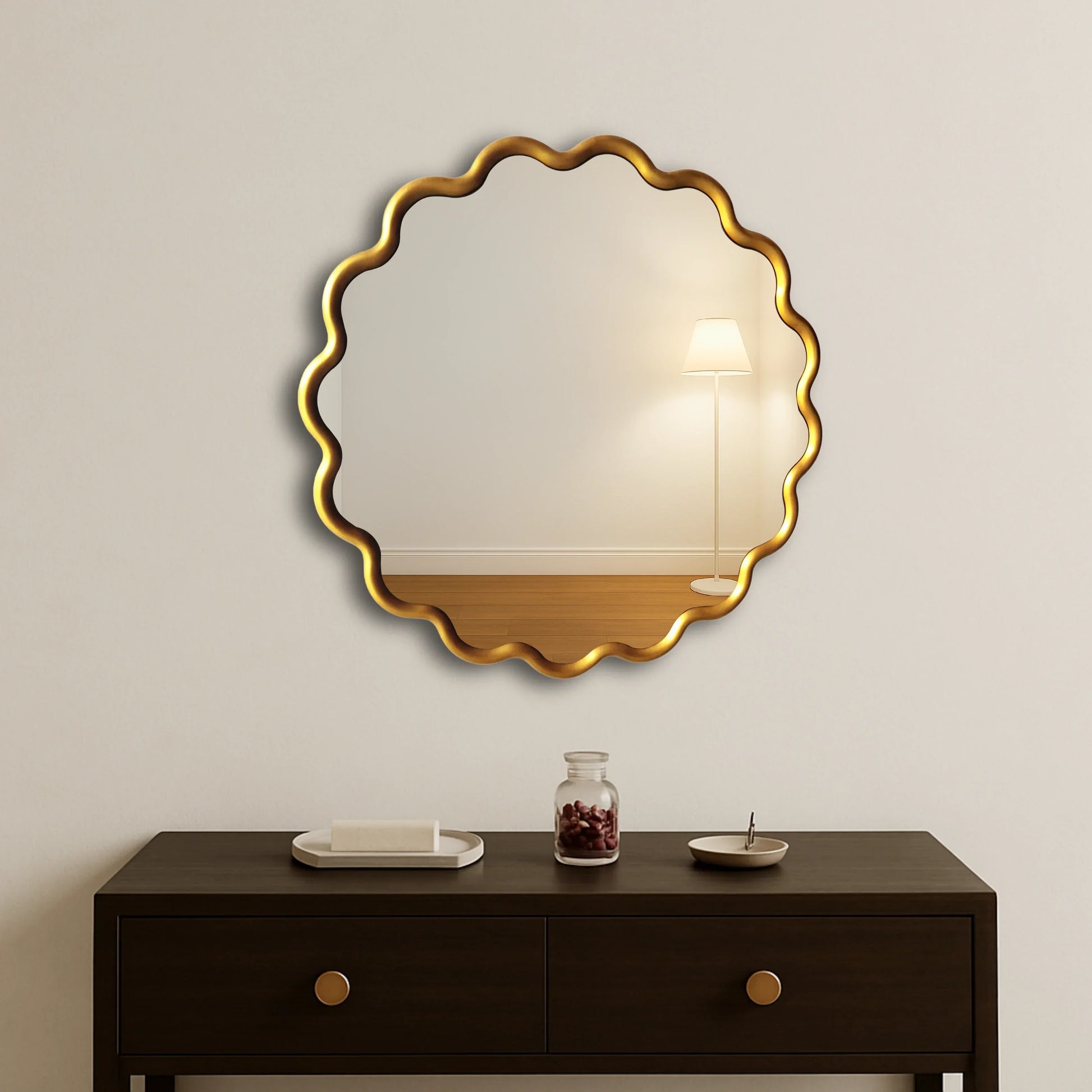 Introducing the Round Wave Mirror, a captivating blend of form and function. This round mirror features delicate, miniature waves encircling its frame, adding a touch of dynamic elegance to any space. Available in a variety of colors, from bright and eclectic to more refined and elegant tones, the Round Wave Mirror effortlessly enhances your decor, making a stylish and versatile statement in any room.